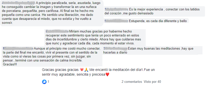 El curso de Miriam "21 días de Mindfulness y meditaciones guiadas" me ha sorprendido muy gratamente por lo bien documentado, riguroso y completo que es. Tiene la dosis justa y equilibrada entre teoría y práctica, para que resulte útil e instructivo a partes iguales. Las 21 meditaciones, muy sabiamente elegidas, consiguen que este curso sea único y adaptable a cualquier circunstancia de tu día a día. Pero, por si todo esto no fuera suficiente, además, Miriam tiene la gran generosidad de enseñarte cómo puedes elaborar tus propias meditaciones, para que puedas crear la que necesites en cada momento, 100% personalizada a tu medida y tu propia situación personal. La dulce y cálida voz de Miriam guiándote a lo largo de todo el curso, es un plus que no tiene precio. En mi opinión es un curso excepcional y lo recomiendo muchísimo"